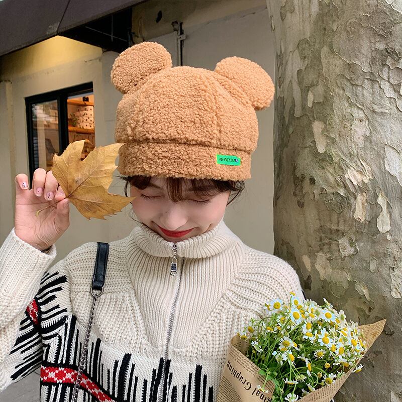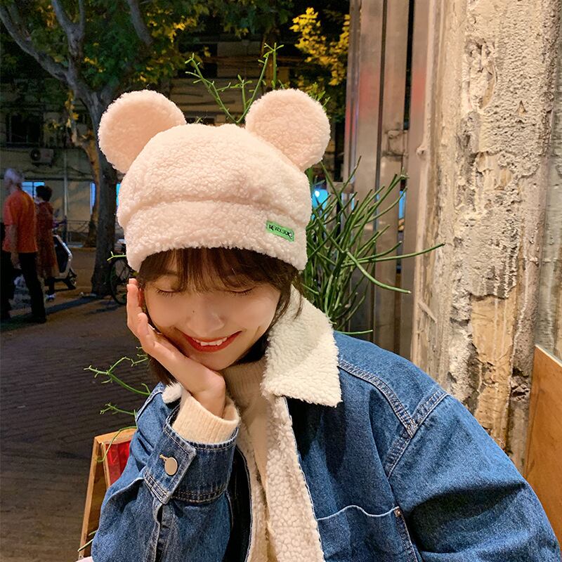 ベアイヤーハット秋冬かわいい冬暖かいパッチベルベットキャップ129