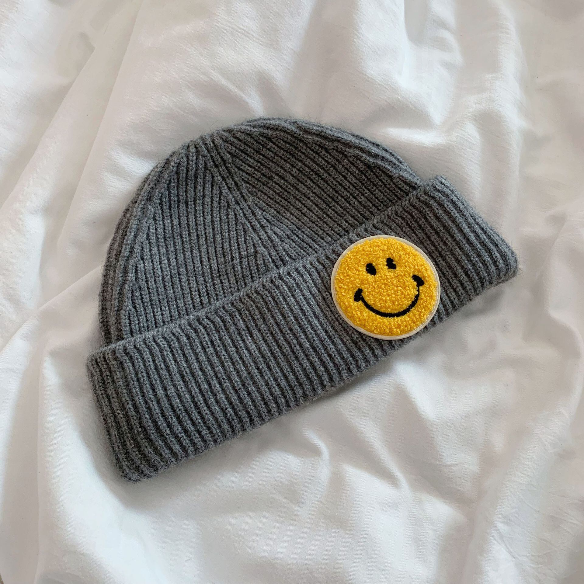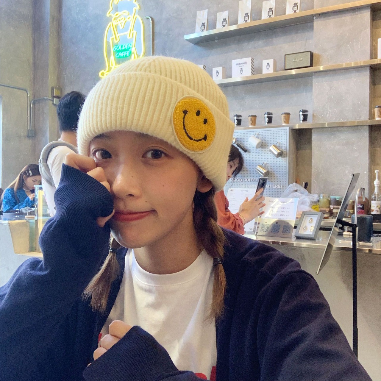笑顔のスカーフ刺繍のつばの広いフェイスラインキャップ秋冬ニットウォームキャップメロンレザーキャップ129