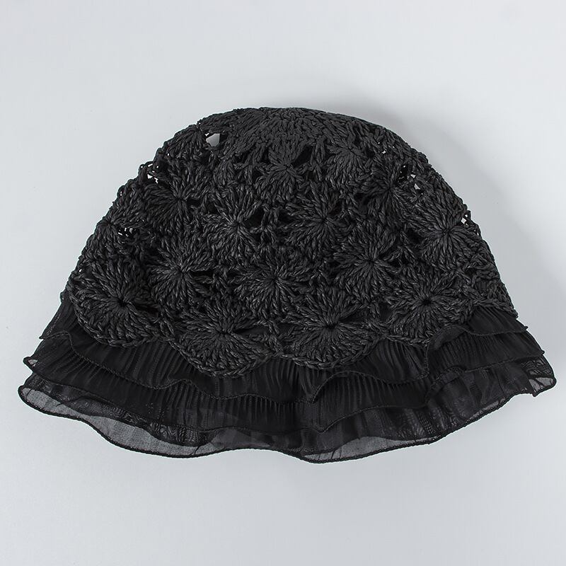 妖精の妖精麦わら帽子の春夏のシフォンレース菌手織りメロンレザー帽子129
