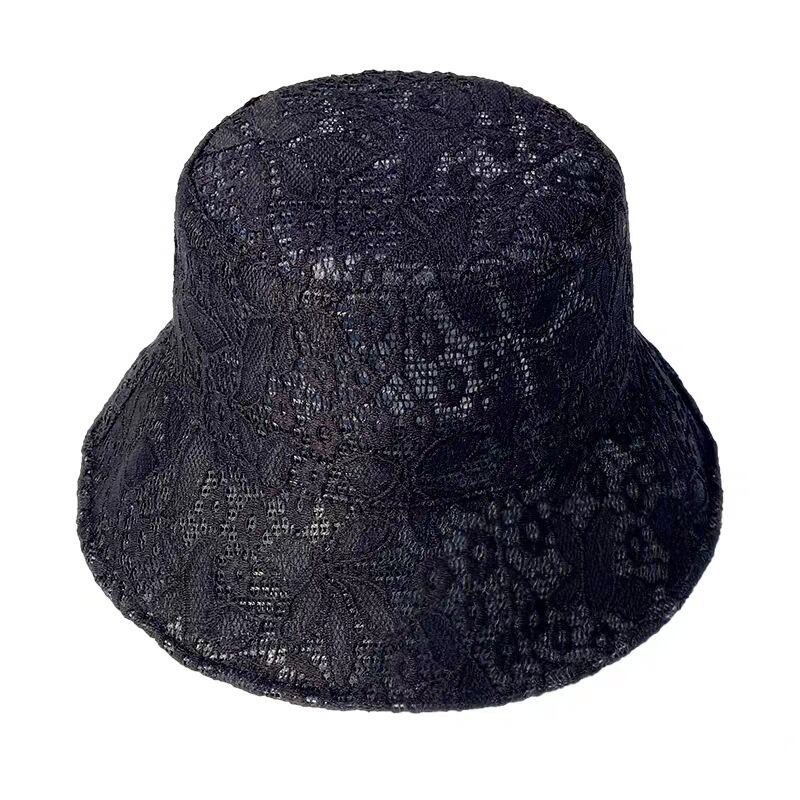 大きな軒の花の刺繍レースフィッシャーマンハットの日焼け止めサンシェード春と夏の中空盆地の帽子129