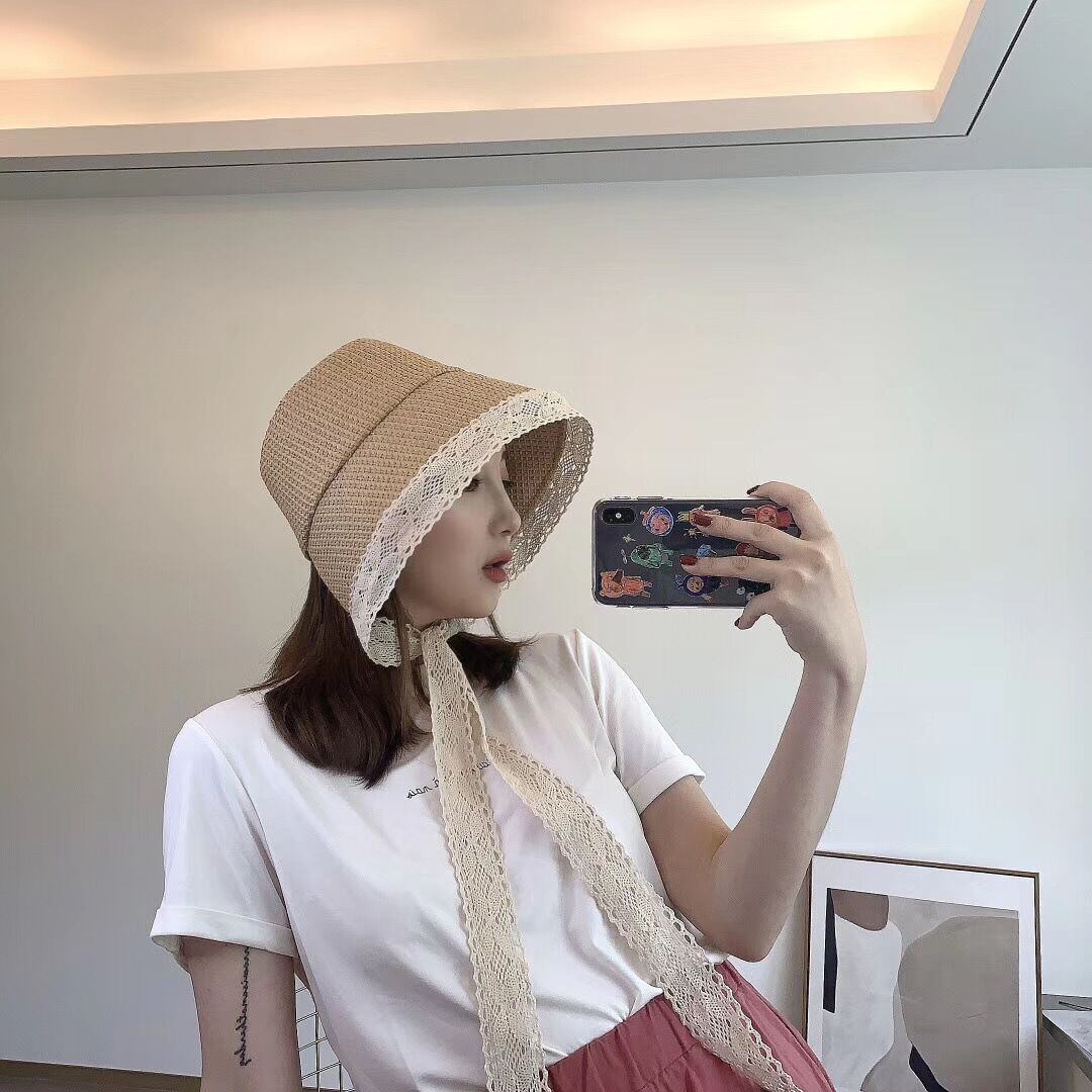 麦わら帽子のの夏のレースのつばのアモイのストラップ付きの外出甘いサンシェードの大きなつばの漁師の帽子129