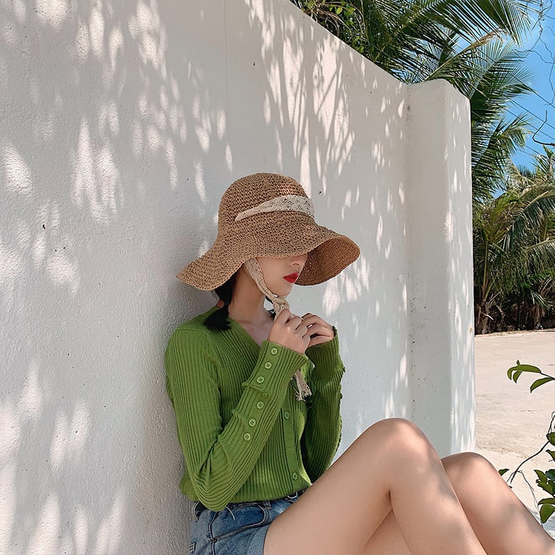 日焼け止めサンハットハットの夏はりたたむことができます織られたビーチ麦わら帽子ホリデービッグイブ129