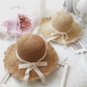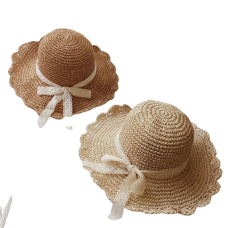 夏の麦わら帽子手作りかぎ針編みのの大きなつばの帽子り畳まれたビーチハット弓サンハットサンハット129