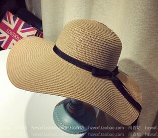 2016アモイボウノットブラックストローハットビーチビッグブリムハットレディースビーチハットアウトドアサンハット129