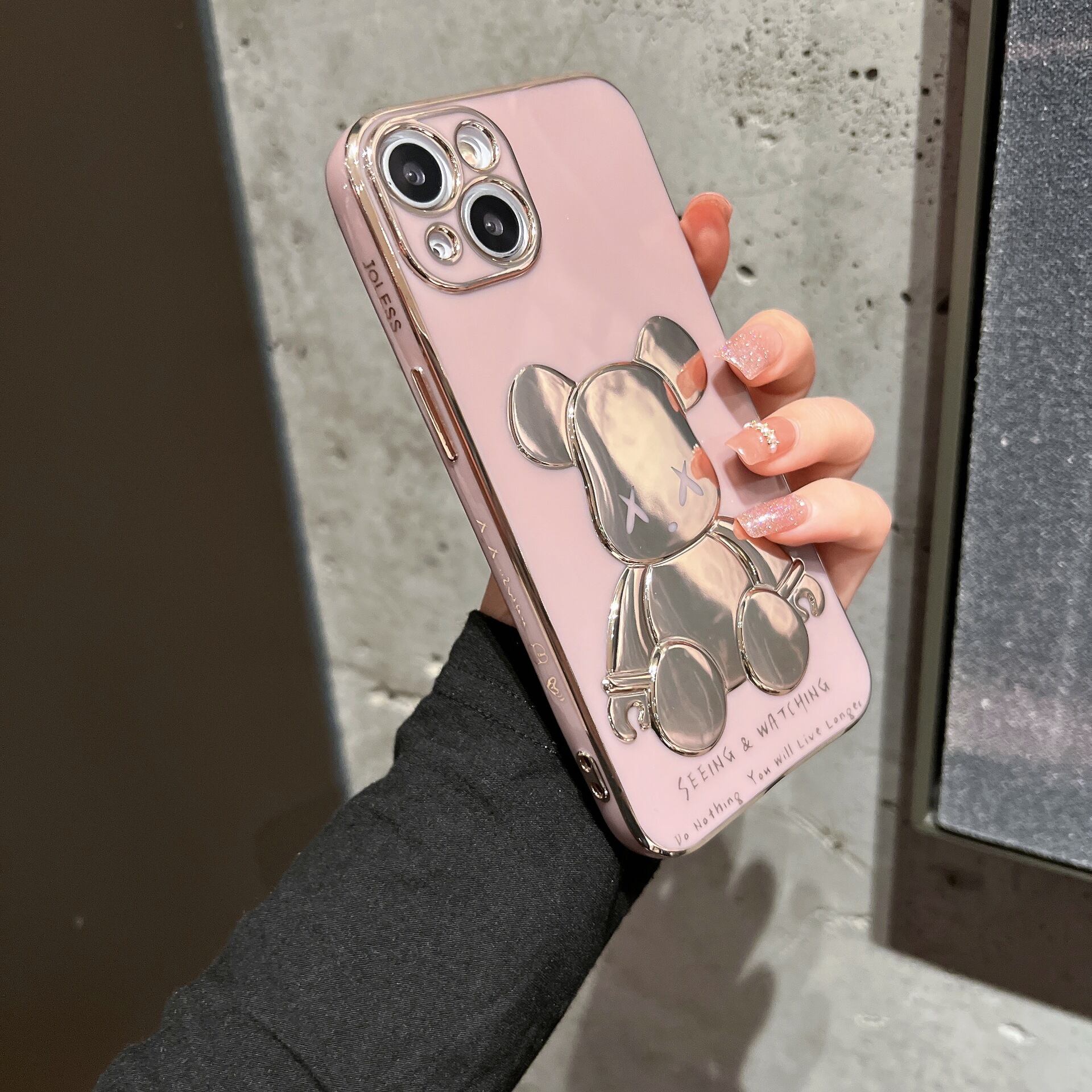 Apple12Promaxに適した電気メッキベアiPhone13漫画携帯電話ケースXSMAXファインホールレンズXSKS1212