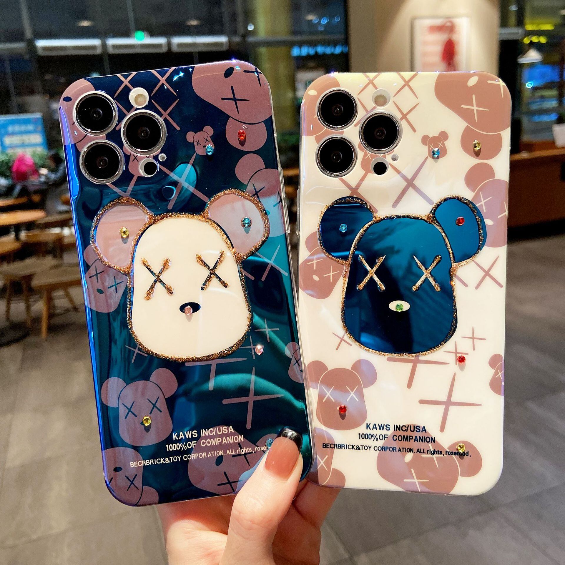 XR漫画のカップルに適したクリエイティブポイントドリルベアヘッド携帯電話ケースiphone13 AppleSKS1212