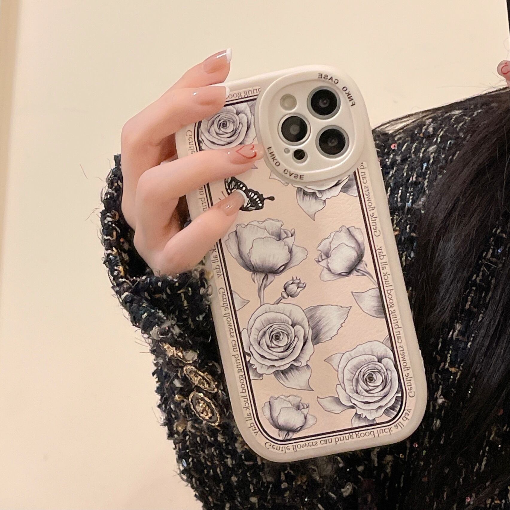 12promaxアップル13携帯電話ケースiPhone11フルパッケージxxrメス8pに適した黒と白のバラの花SKS1212