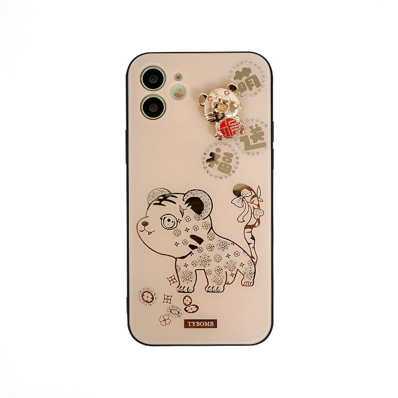 かわいい虎はiPhone13携帯電話ケース12のパールペンダントチェーンラインストーンアップル11promSKS1212