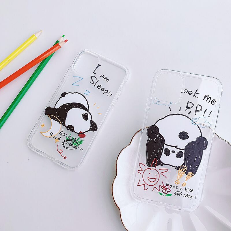 iPhone12に適したかわいいパンダApple13携帯電話ケース11エアバッグ落下防止ケース透明SKS1213