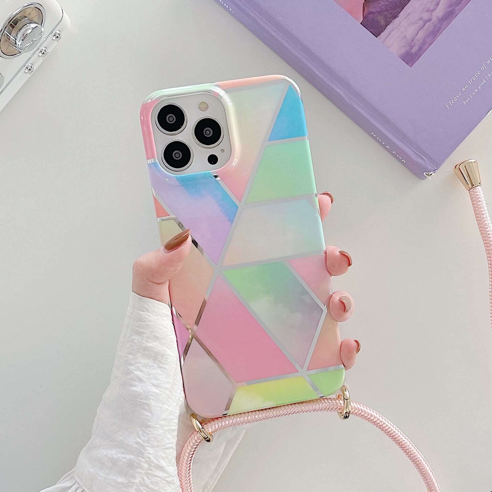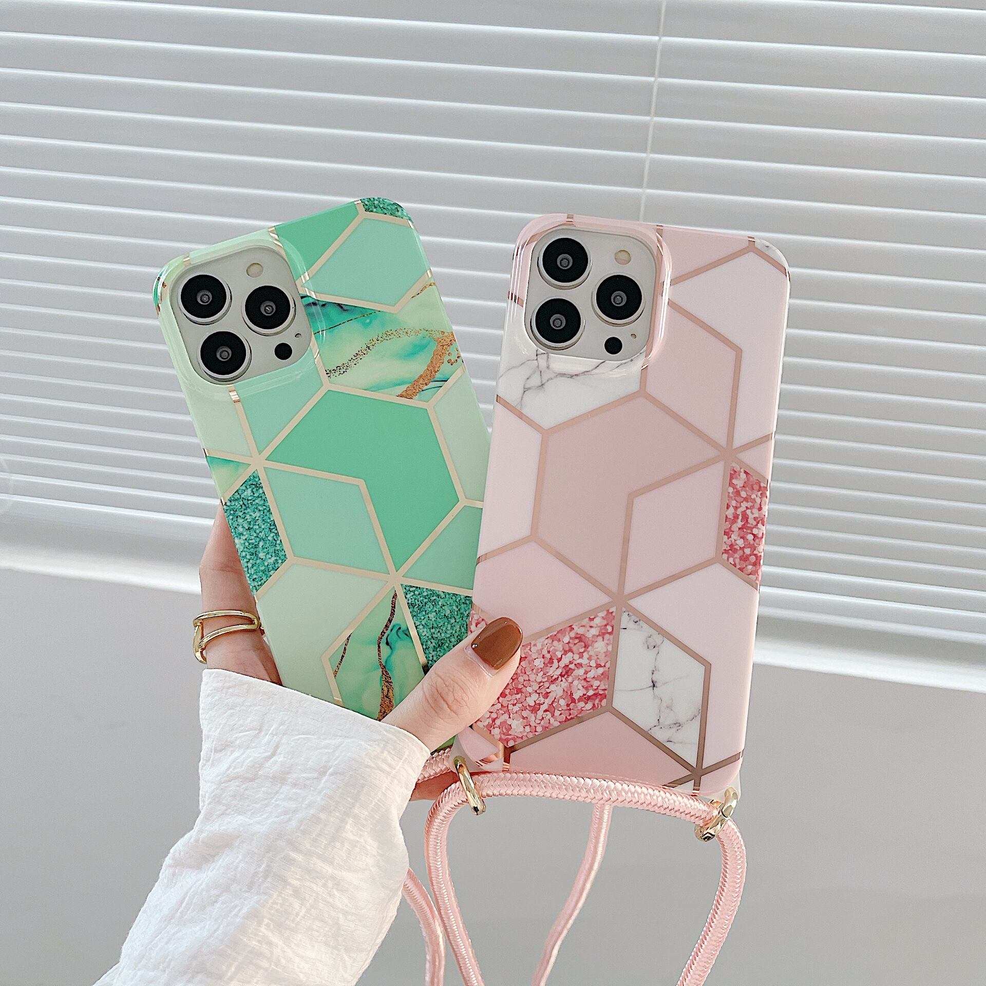 電気メッキスプライシング菱形大理石はApple13携帯電話ケースiPhone1112ProMax分解ストラップにSKS1213