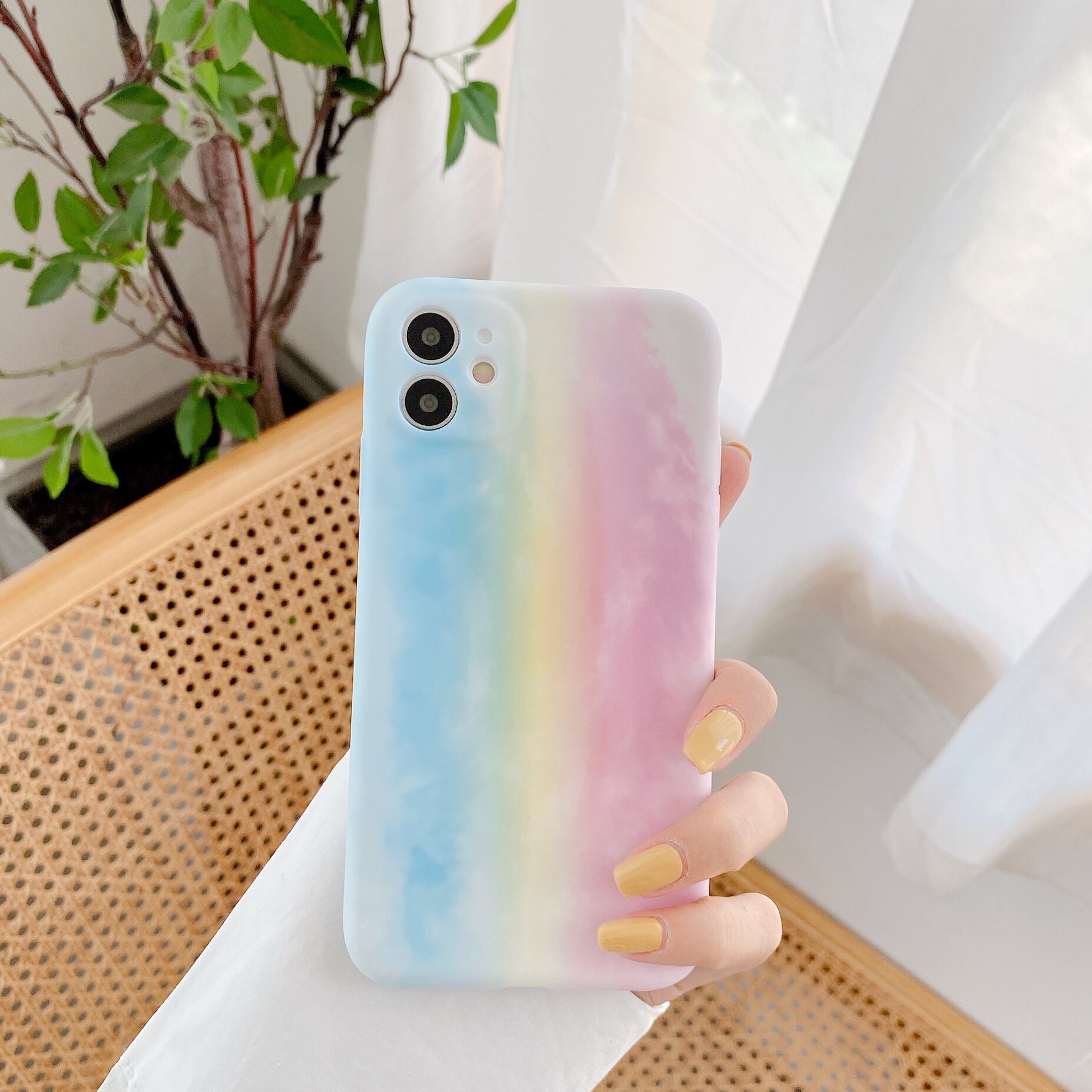 iPhone13ProMax Apple12XS携帯電話ケース78plus液体シリコン11に適したレインボー水彩画SKS1213