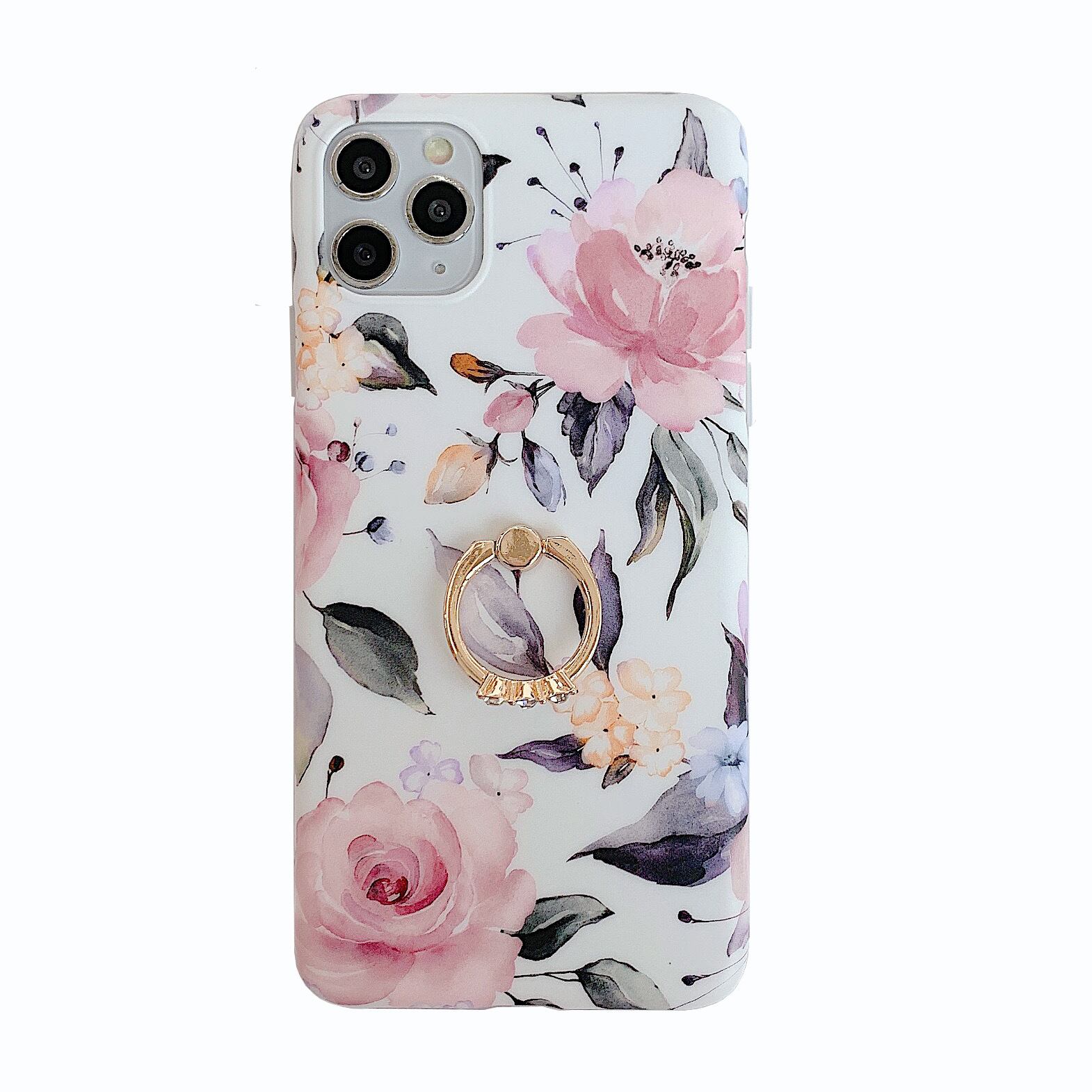 Apple 13 ProMaxシリコンXR12ローズフォンケースに適したダイヤモンドリングホルダー付きグレーSKS1213