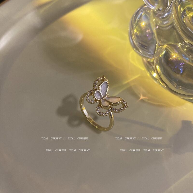バタフライリング立体スーパーフェアリーライトラグジュアリーシェルマザーオブパールデザインジルコンリングSXS