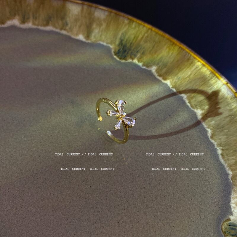 バタフライジルコンオープンリングメスアジャスタブルライトラグジュアリーハイセンスリングメスSXSSXS