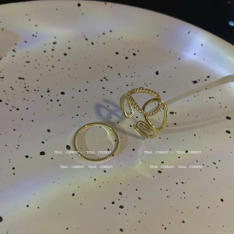 アドバンストクロスツーピーススーツリングメスプレーンリングライトラグジュアリーオープンインデックスフィンガーテールリングSXS