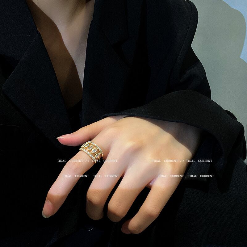 オープンアジャスタブル多層リングメスジルコンリングテールリングコールドインデックスフィンガーリングSXSSXS