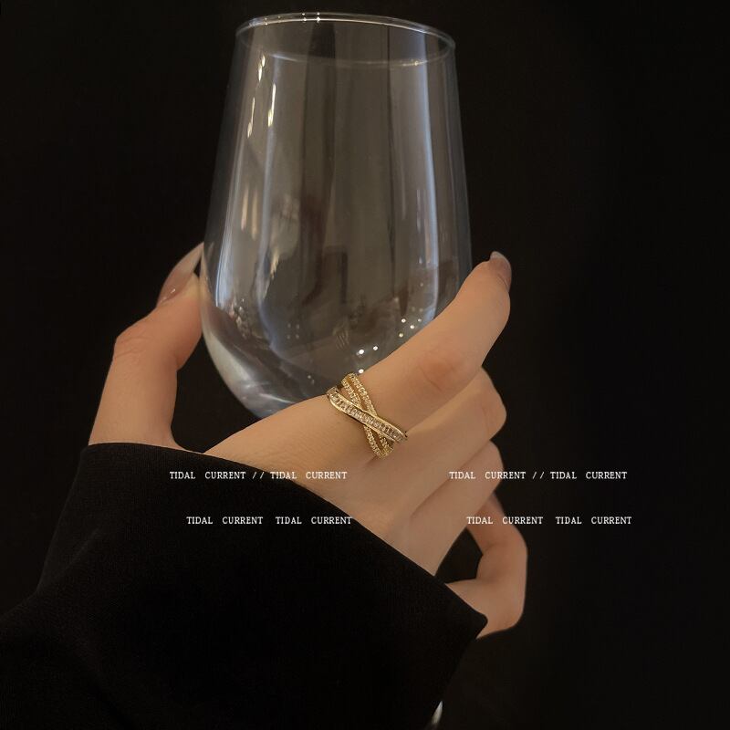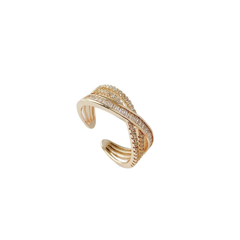 ライトラグジュアリークロスリングメスマイクロインレイジルコン人差し指リングオープンテールリングSXSSXS