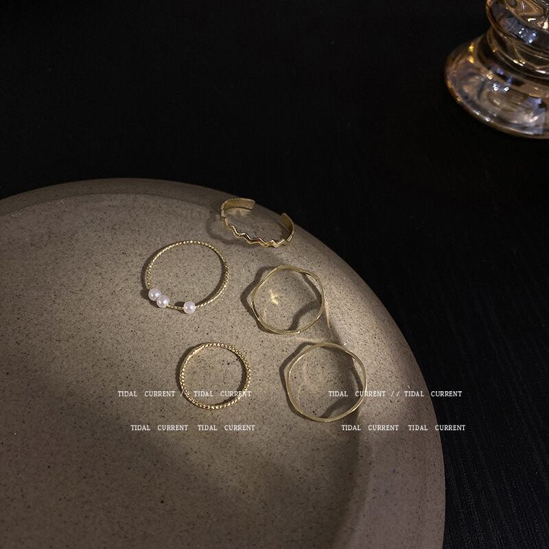 コンビネーションセットリングメスライトラグジュアリーハイエンドセンスのパールリングコールドリングSXSSXS