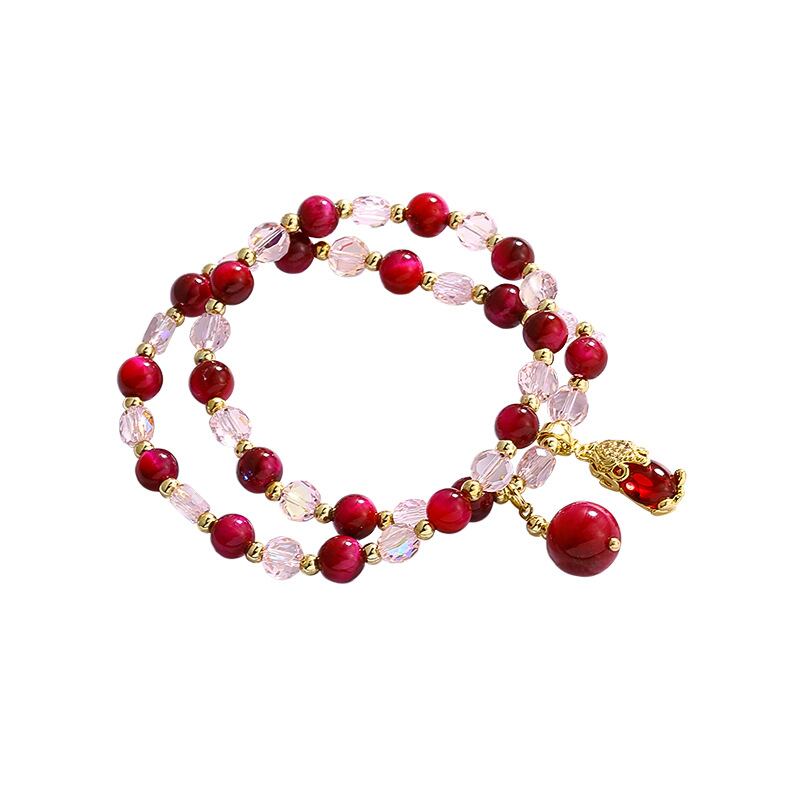 お祭りローズレッドタイガーアイストーンバンブストーンブレスレット女性ラッキートランジット貔貅ブレスレットダブルブレスレットLHLLHL