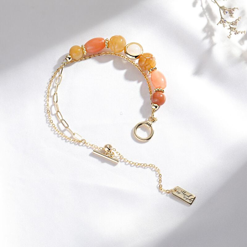 ナチュラルクリスタルブレスレット新しいOTスライドバックル2層ジュエリーゴールデンシルキージェイドブレスレットLHL014015
