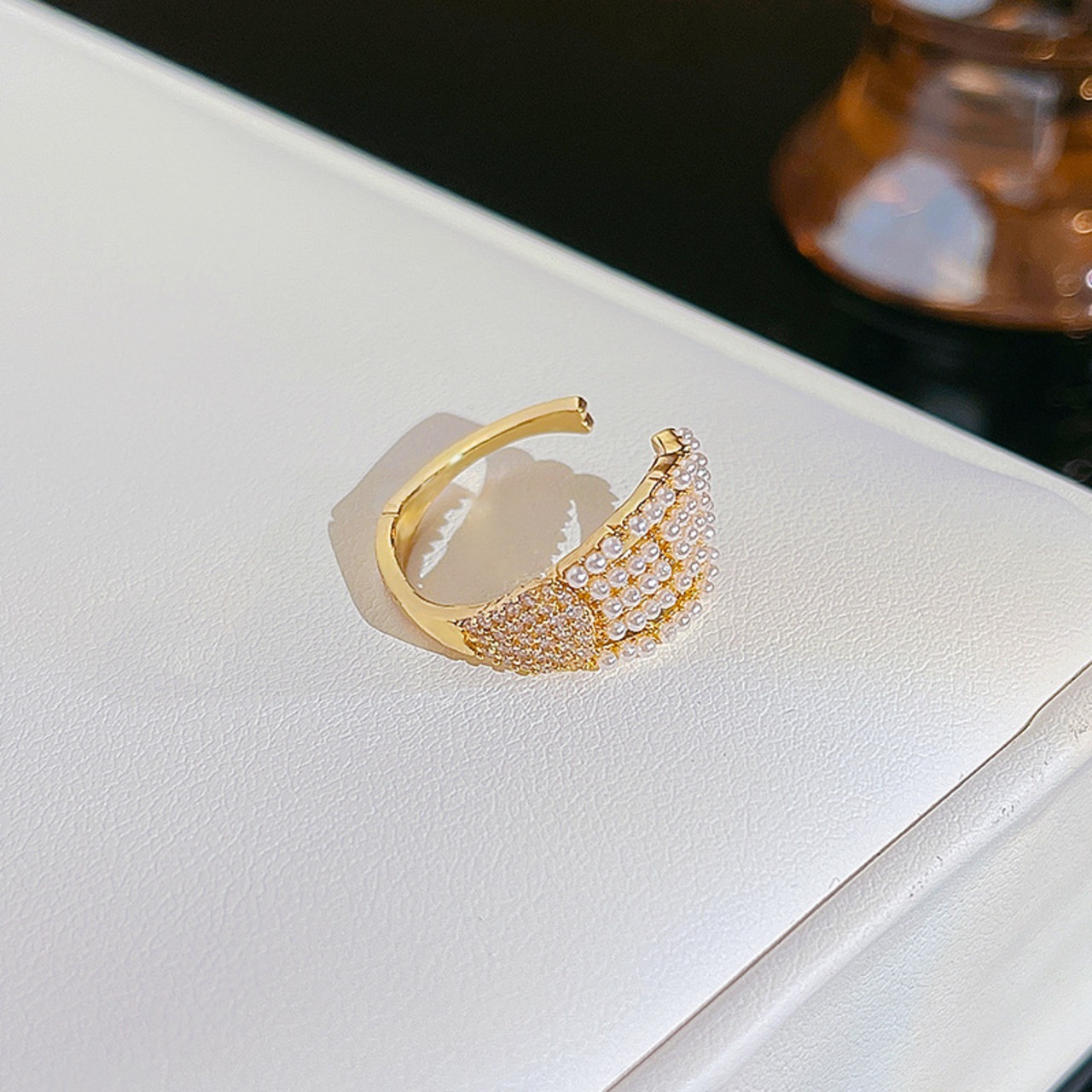 日本のパールジルコンオープンリングメスコールドリングビブラートテールリングSXSSXS