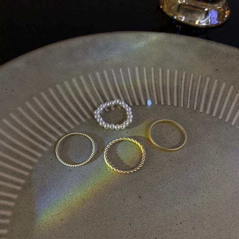 フォーピースコンビネーションリングコールドパールプレーンリングスタッキングジョイントリングメスマットゴールドハイセンスリングSXSSXS