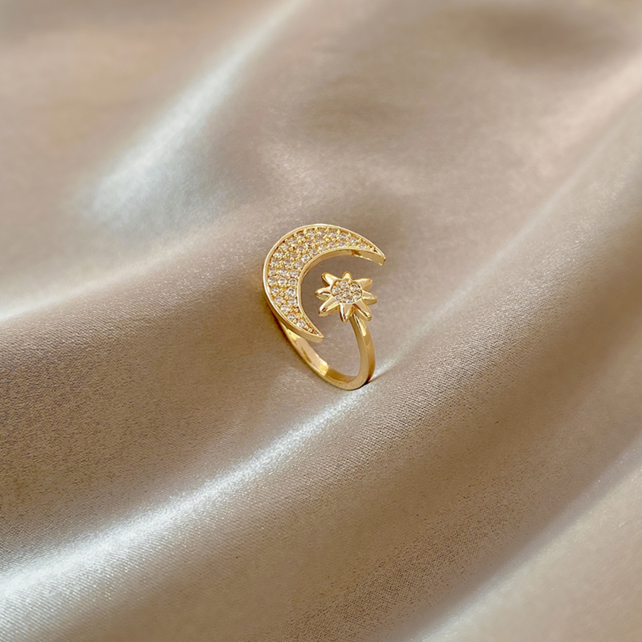 新しいリングメススタームーン象眼細工ジルコンオープンリングリングハンドジュエリーSXSLHLSXS