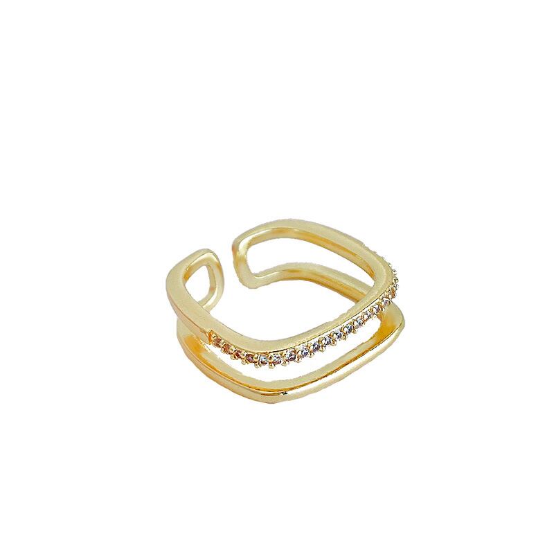 リング女性の高級感のあるコールドダブルレイヤーオープンジュエリーリングSXSSXS