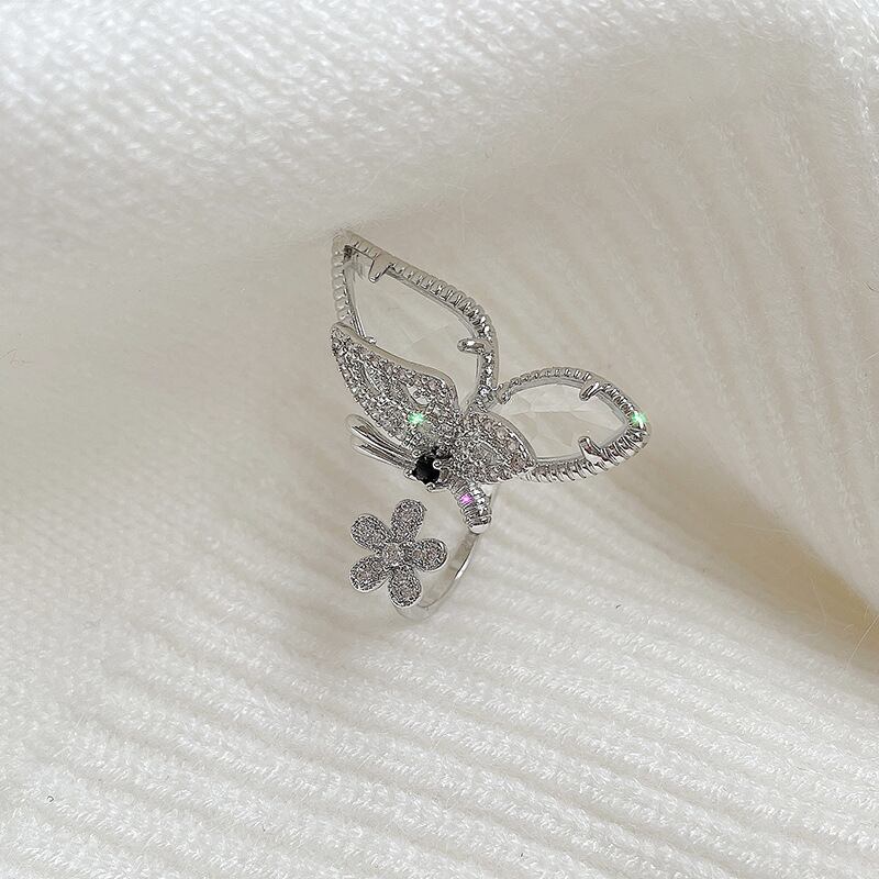 3次元バタフライリングメスオープンライト高級ジルコン誇張感高級感誇張リングSXSSXS