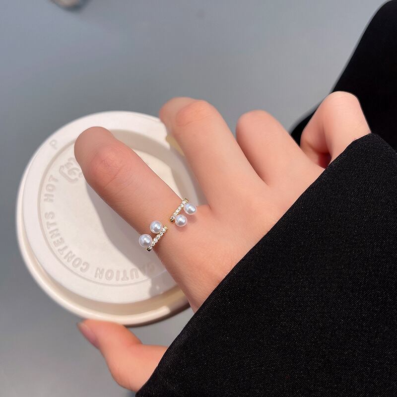 パールマイクロインレイオープンリングメスライトラグジュアリーインデックスフィンガーリングハイセンス2022ニューリングSXSSXS