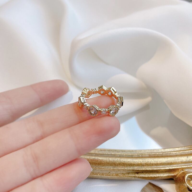 フラワーリングメスライトラグジュアリー高級感コールドスクエアダイヤモンド人差し指リングSXS