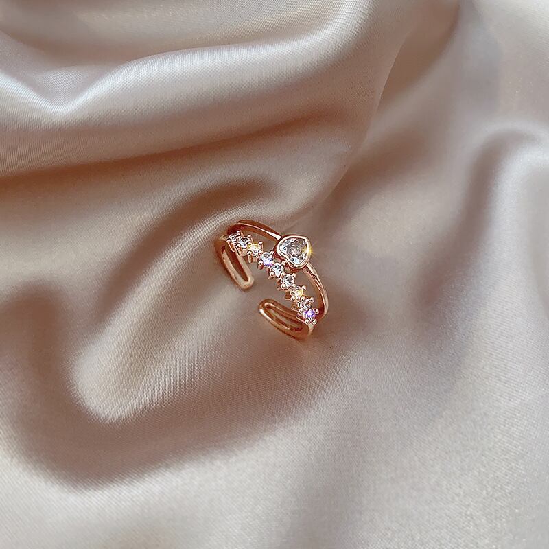 オープンアジャスタブルリングメスコールドインデックスフィンガーダイヤモンドリングライトラグジュアリージルコンダブルレイヤーリングSXSSXS