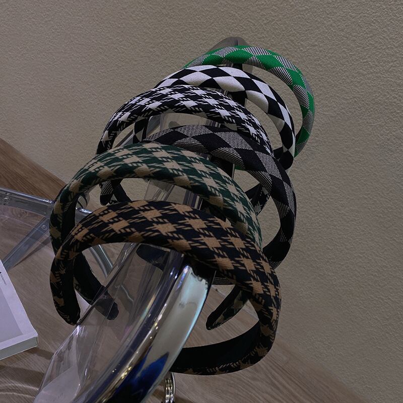 黒と白の市松模様のヘアバンド女性2022年秋冬新しいスポンジつばの広いヘアヘッドバンドヘッドバンドFHF