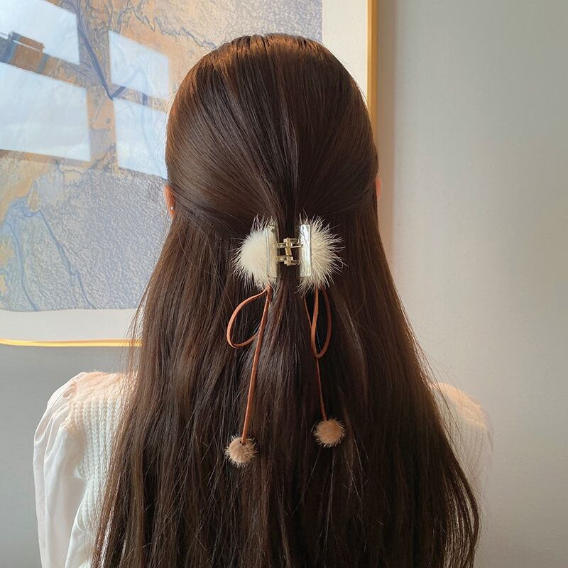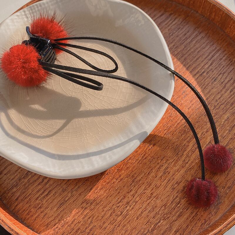 秋と冬の新しいフリンジボールヘアピン、蝶結びベルベットヘアピン、ヘアグラブクリップ、ガーリーヘアアクセサリー、フリンジクリップFHF