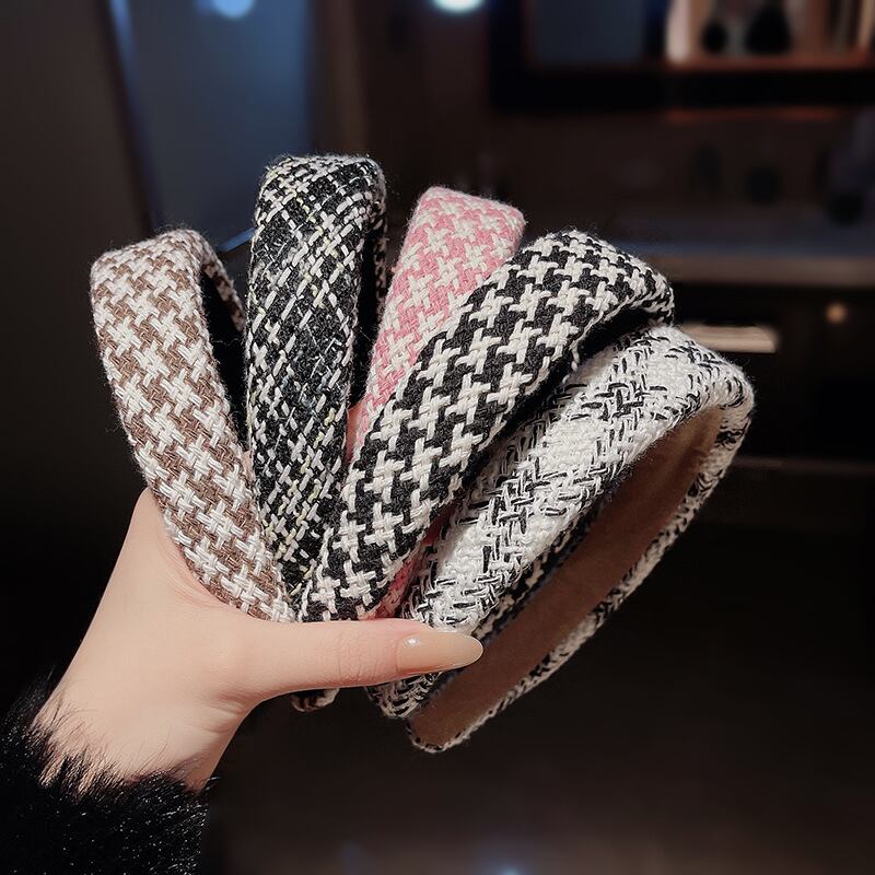 秋と冬の黒と白の市松模様のヘッドバンド女性の格子縞の生地のヘッドバンドウォッシュフェイスヘアアクセサリーFHF