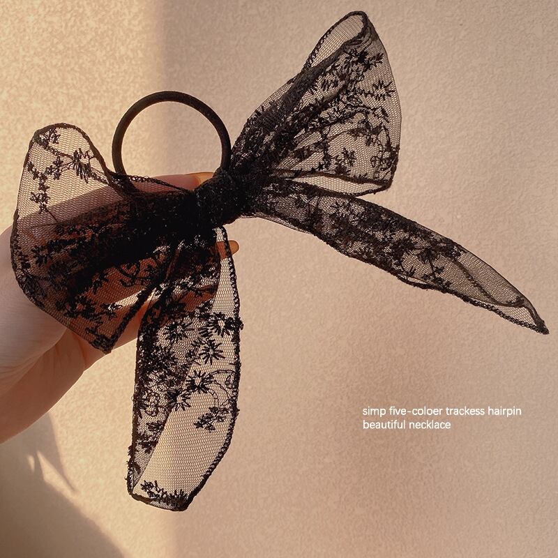 日本の黒いレースの弓のヘアタイ女性のヘッドロープスーパーフェアリーヘアロープヘアアクセサリーFHFFHF
