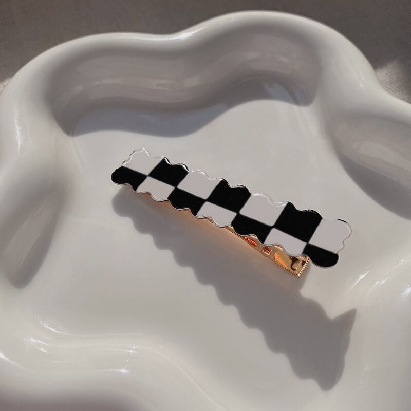 黒と白のチェッカーボードヘアピンメス側シームレスヘアピン前髪クリップヘッドドレスFHFFHF