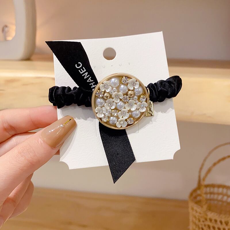 高品質の蝶結びヘアタイ、メスのヘアロープ、パールフラワー、輪ゴム、超弾性ヘアオーナメントFHF