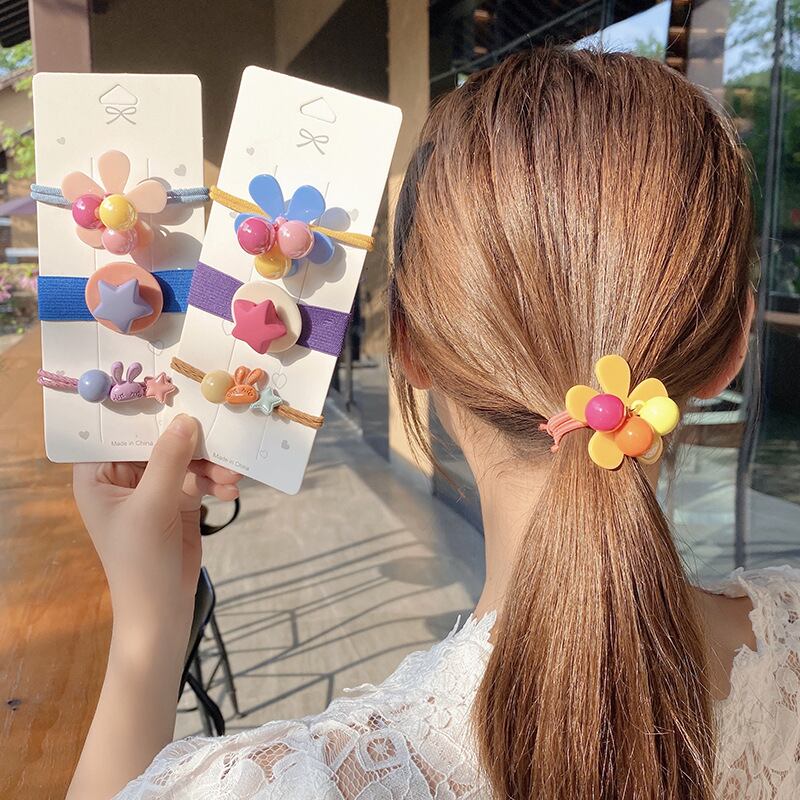 スリーピースキャンディーカラーフラワーヘアタイ女性用輪ゴムタイヘアかわいいヘアロープヘアアクセサリーFHF