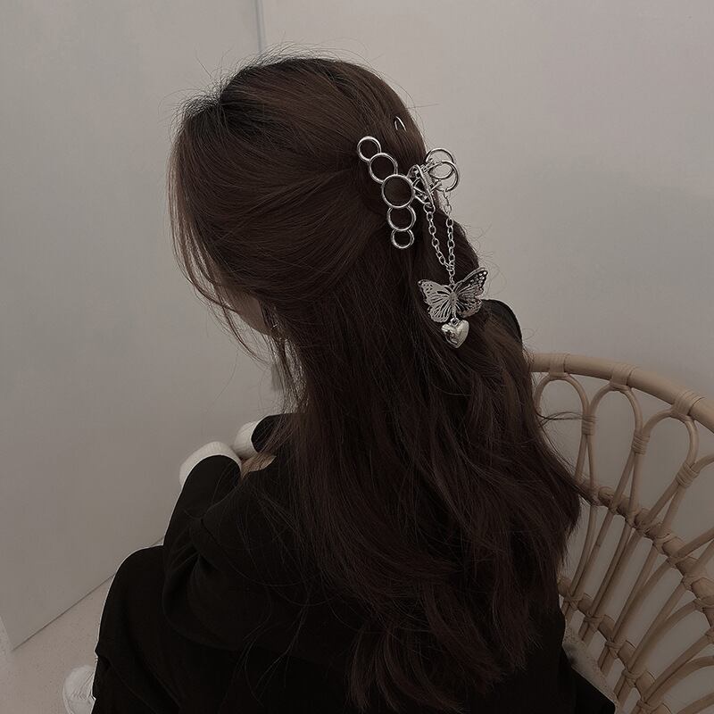 メタルタッセルヘアピンシルバーバタフライクリップバックヘッドポニーテールクリップヘッドギアFHF
