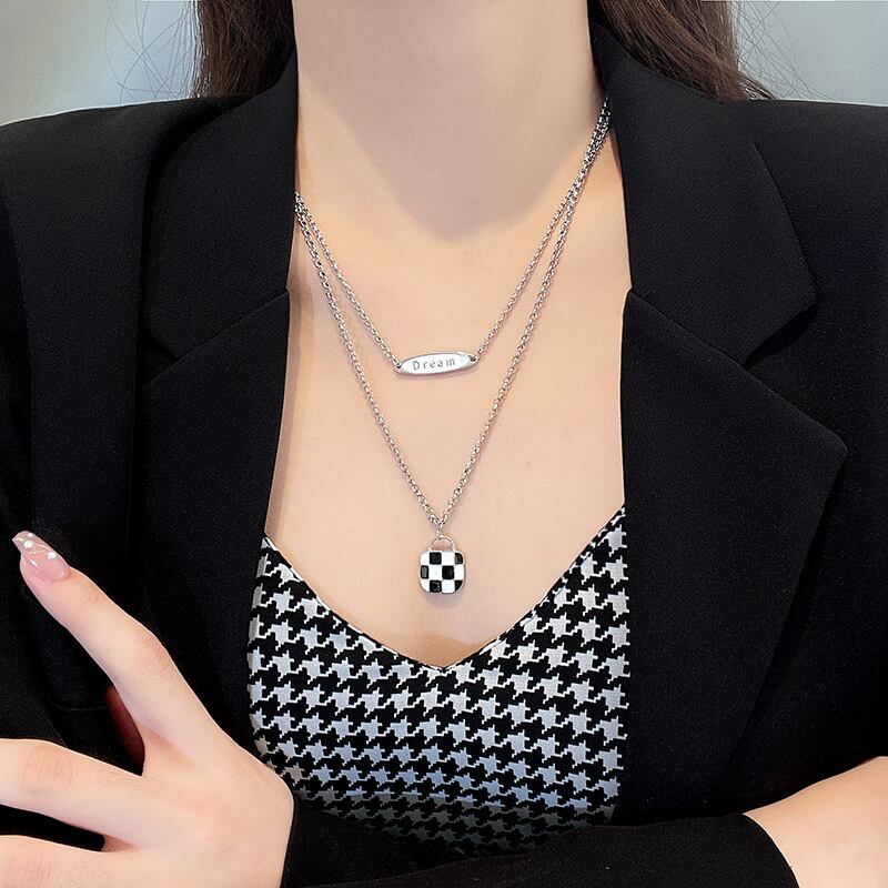 市松模様のバッグネックレス女性シニア二層黒と白の市松模様の洋服チェーンXHX