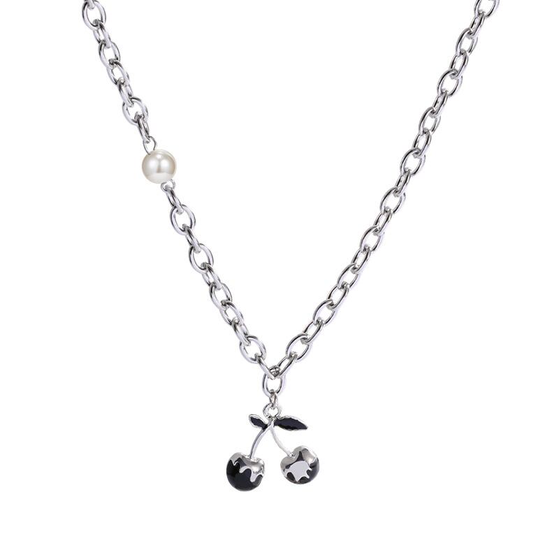 ヒップホップブラックチェリーべチタンネックレス女人服チェーンハイエンドセンスネックレス>> XHX