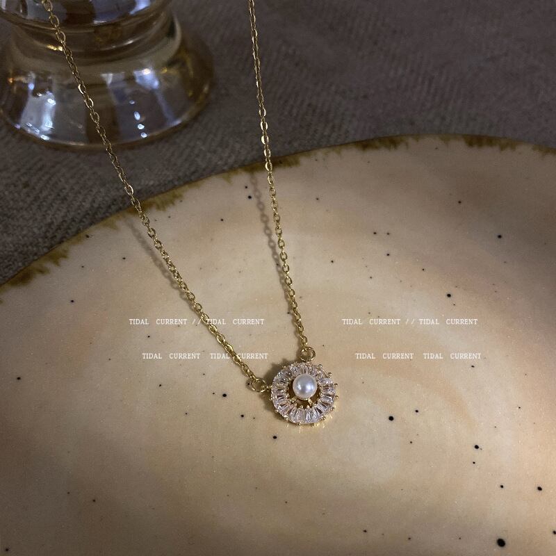 高品質のパールサークルネックレスメス鎖骨チェーンコールドチタンスチールK18ゴールドネックレスメスXHX