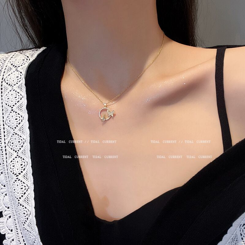 高品質の立体バタフライネックレスメスペンダントチタンスチール鎖骨チェーンXHX