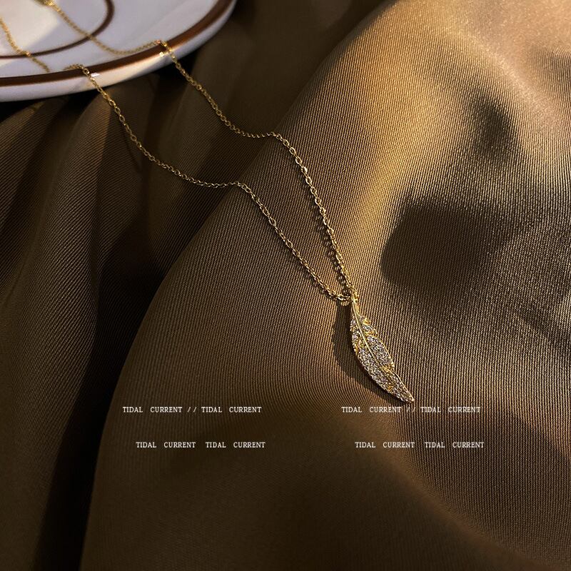チタンスチールネックレスメスリーフペンダント鎖骨チェーンコールドネックレスXHX
