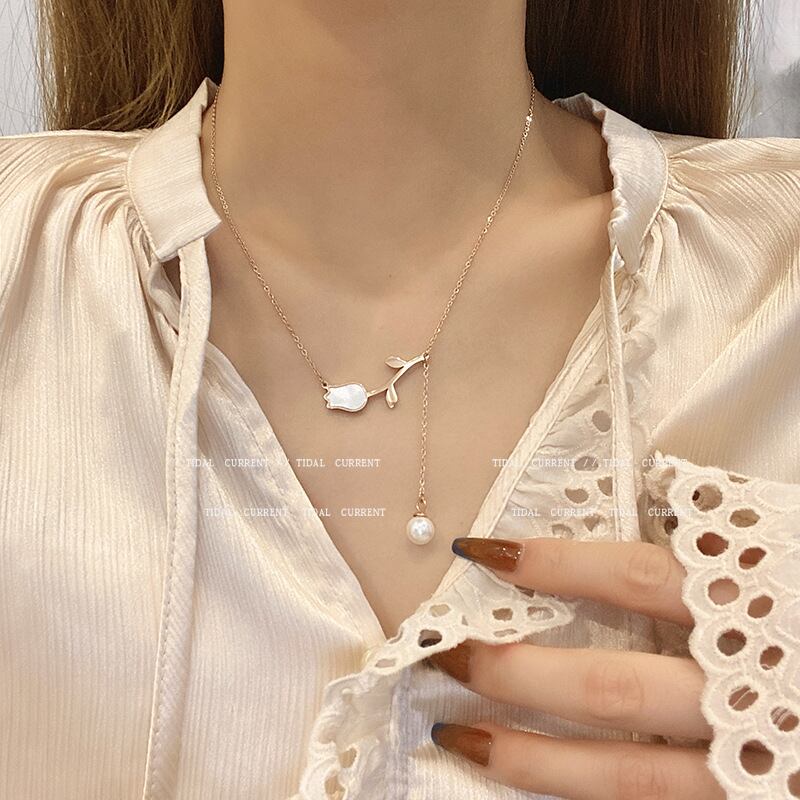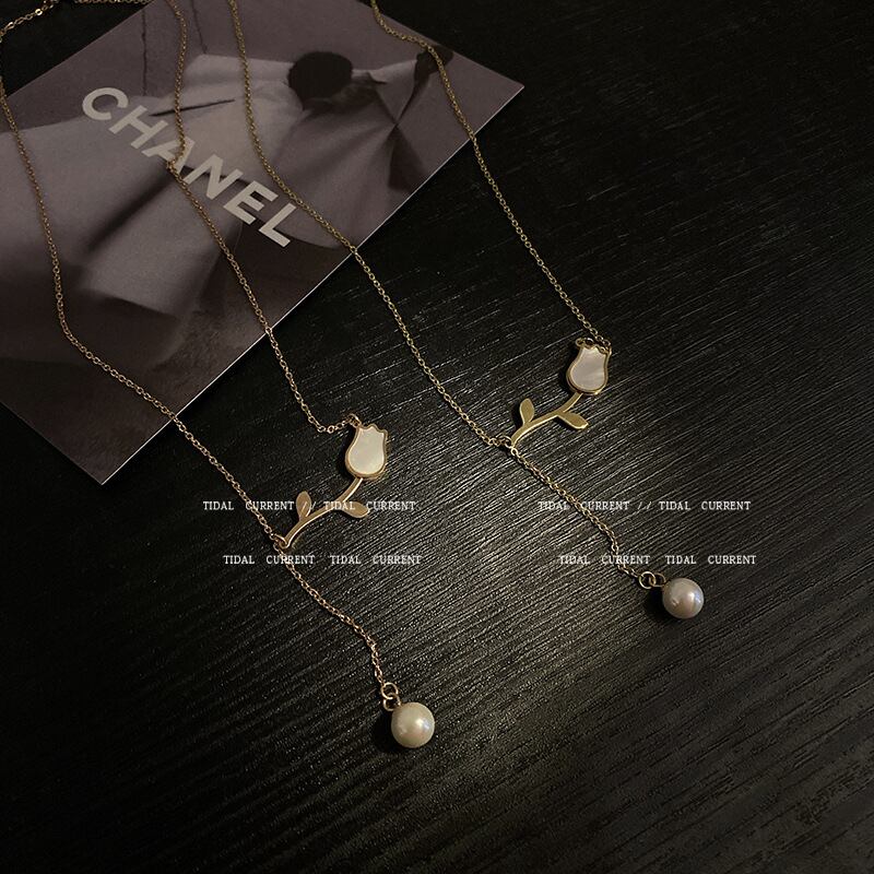 18Kゴールドチタンスチールネックレス女性用鎖骨チェーンフラワーペンダントコールドXHX