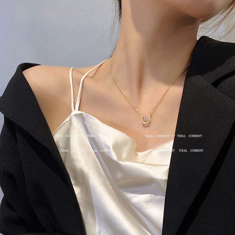 チタンスチールスマートU字型ネックレス女性ライトラグジュアリーペンダントカラーコールド鎖骨チェーンXHX
