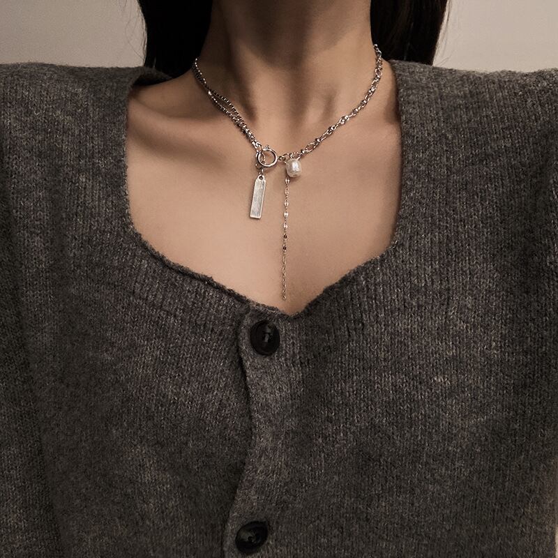 ヒップホップ2層ネックレスメスコールドデザイン鎖骨チェーンメタルセーターチェーンオスXHX