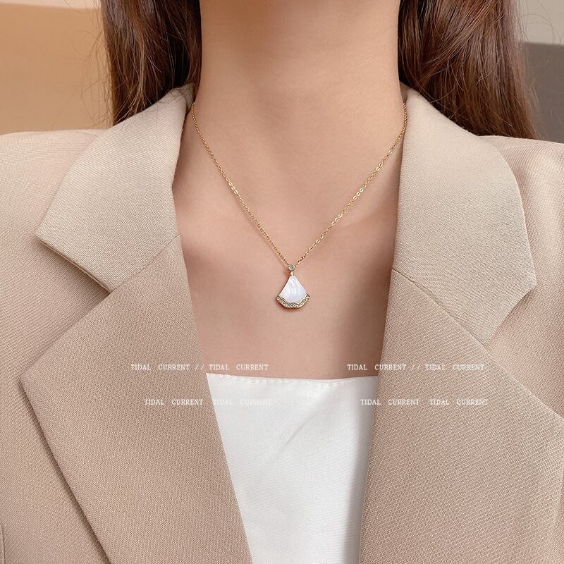 2022新しいチタンスチールネックレス女性ライトラグジュアリーシェルジルコンペンダント鎖骨チェーンXHX