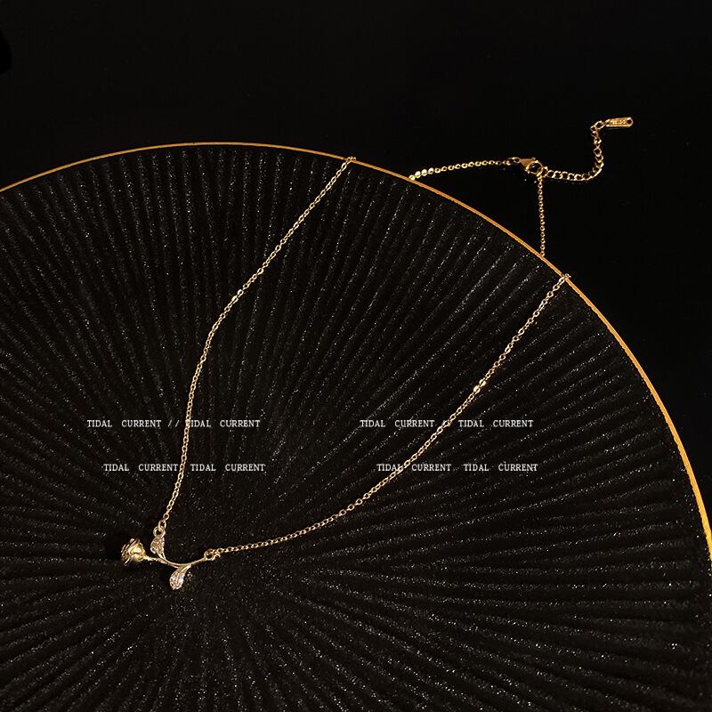 チタンスチールネックレスメスローズフラワーペンダント鎖骨チェーンネックレスXHX